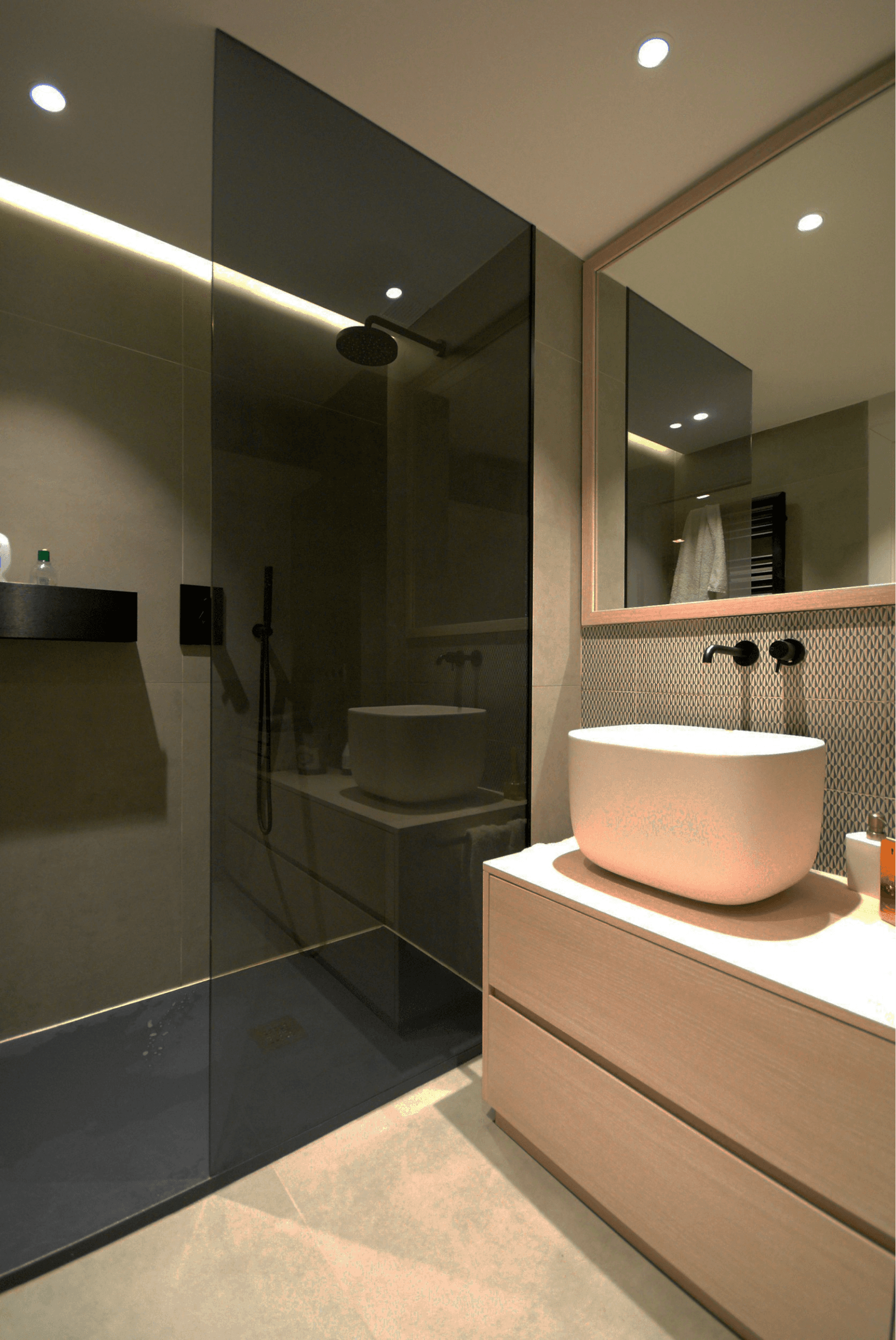 Refresh in a contemporary bathroom featuring a rain shower, luxury toiletries, and soft towels.